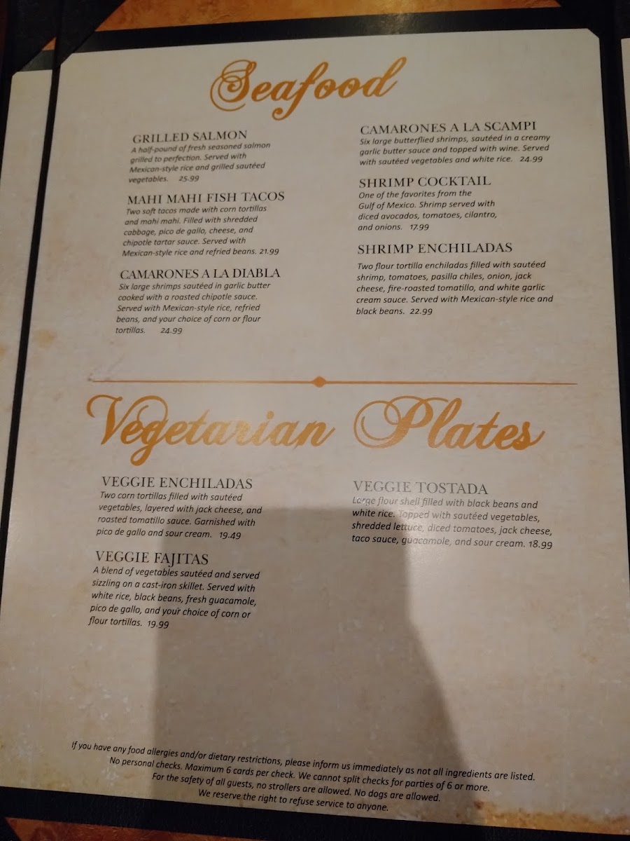Another must-try is the Chile Verde, which showcases tender pork slowly cooked in a flavorful tomatillo sauce. Between the seasons of comfort and indulgence, it is hard to beat this dish’s warm, rich essence. Or, for those who lean towards the ocean, the Grilled Salmon offers a light yet satisfying option, perfectly seasoned and served with Mexican-style rice and grilled vegetables for $26.99.