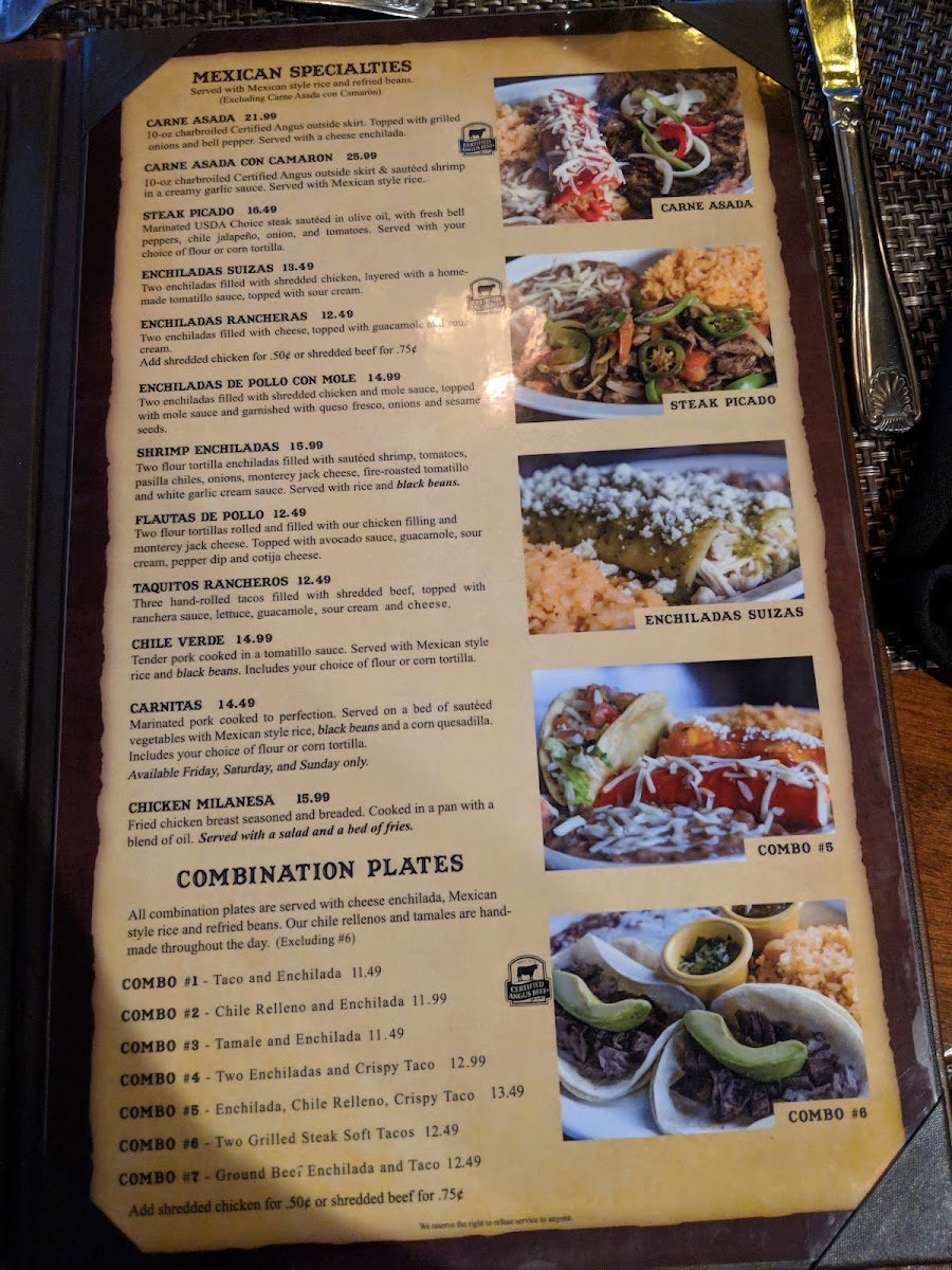 Elvira's Grill specializes in traditional Mexican cuisine, boasting a menu that features a delectable array of dishes made from fresh ingredients and authentic recipes. One standout is the Steak Picado, where marinated USDA Choice steak is sautéed to perfection with fresh bell peppers, jalapeños, onions, and tomatoes. Served with your choice of corn or flour tortillas, this dish is bursting with flavor and tenderness, truly representing the heart of Mexican cooking for just $23.99.